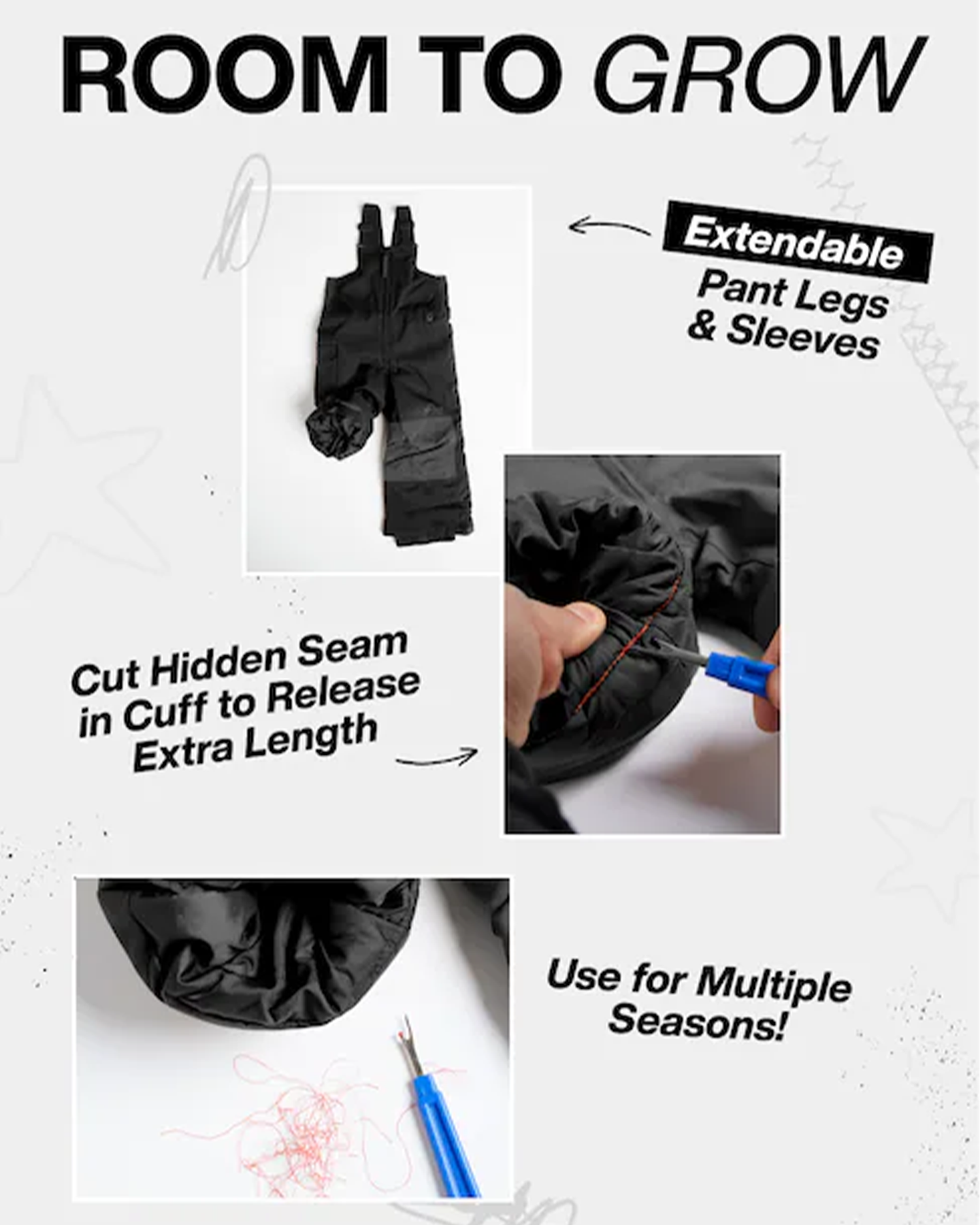It's got that not too tight or too baggy feel that makes it fit just right, and our Room-to-Grow system extends the inseam two inches to keep up with kids' growth spurts. A center front zip makes for easy on and off.