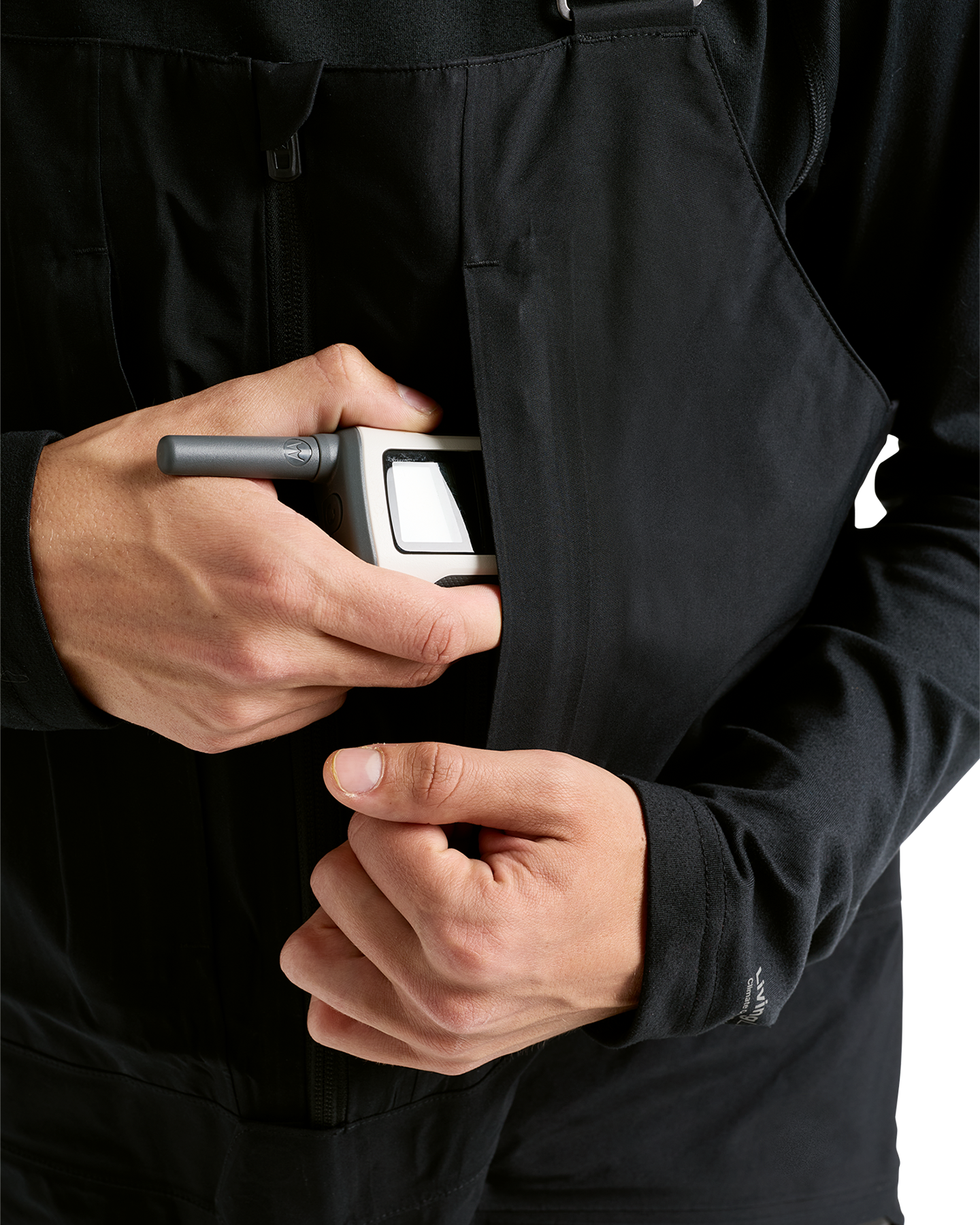 All the right pockets including a pocket with a beacon loop, zippered chest pockets with a built-in device pocket and a media port, secure cargo pockets, and zippered hand-warmer pockets.